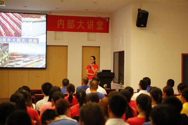 7月1日晚19時(shí),在公司六樓會(huì )議室,一段建國60周年大閱兵的精彩視頻正在播出:來(lái)自陸、海、空官兵組成的閱兵方隊,正邁著(zhù)堅定有力的步伐、勇往直前的英姿接受?chē)覚z閱,這是《高效執行力》培訓中的開(kāi)場(chǎng)部分。