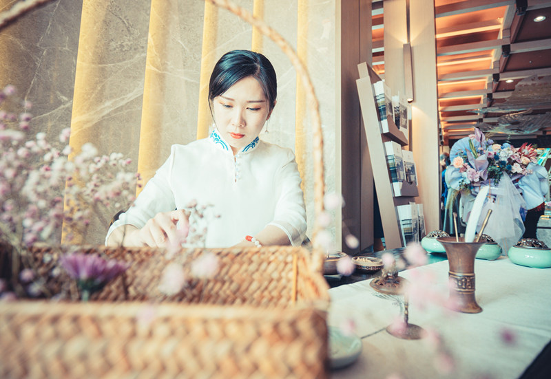 除了沙盤(pán)講解與入室品鑒,金泰·錦府營(yíng)銷(xiāo)中心開(kāi)放當日更營(yíng)造了一個(gè)古樸典雅與現代風(fēng)尚完美融合的新意境。一首古箏曲,滿(mǎn)園傳詩(shī)意;曲水流觴處,遍地是花香;中式風(fēng)骨韻,潤物細無(wú)聲。一條蜿蜒的水景溫柔的載著(zhù)這五顏六色的花瓣將琴棋書(shū)畫(huà)茶酒花送往心中的遠方,向眾人展現最淋漓盡致的美。另有桃花釀、桂花酥、英俊帥氣調酒師;調香師,茶藝師,圍棋美女見(jiàn)真章;書(shū)法家,國畫(huà)家,字畫(huà)之中有真諦……